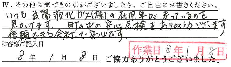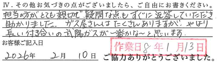 ・納品(給湯器)・開栓・その他でご訪問(個人情報の記入がありましたので青で塗っております)