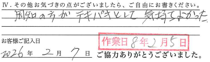 ・その他・納品(ビルトインコンロ・レンジフード)でご訪問(個人情報の記入がありましたので青で塗っております)