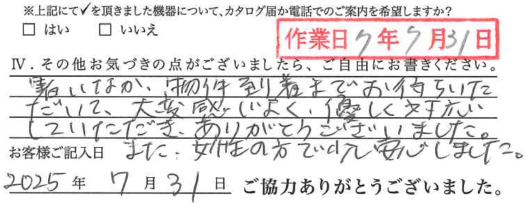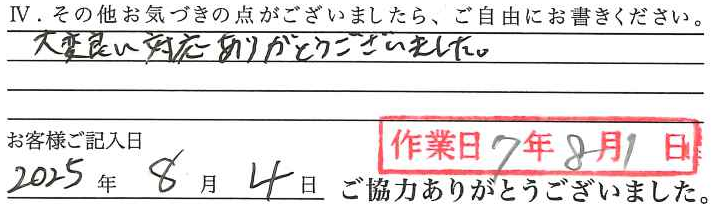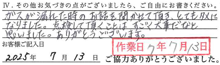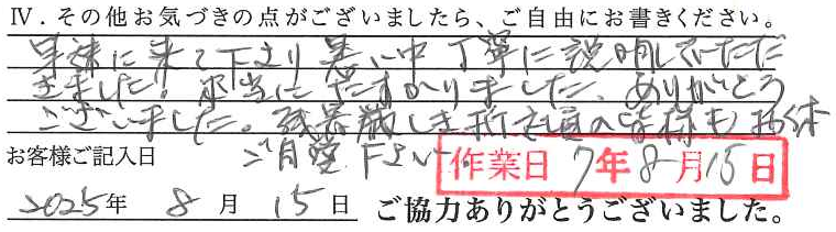 ・修理・納品(給湯器)でご訪問(個人情報の記入がありましたので青で塗っております)
