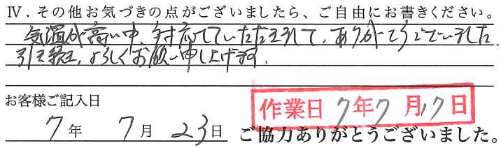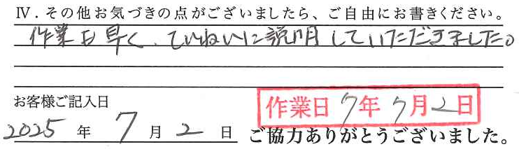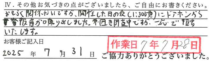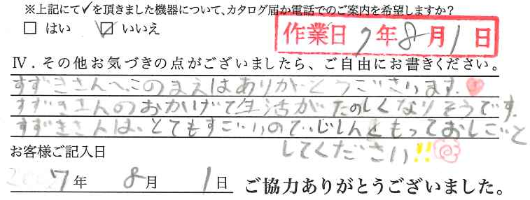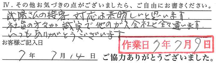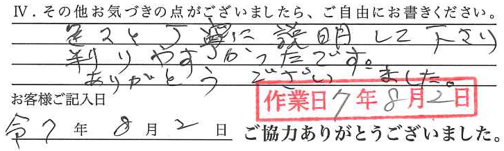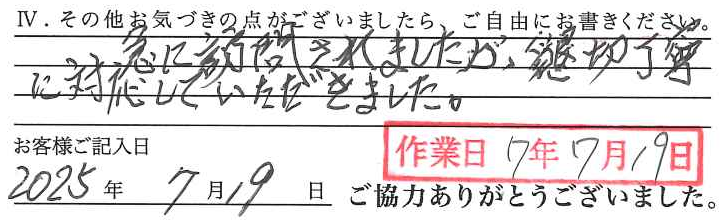 ・修理でご訪問(個人情報の記入がありましたので青で塗っております)